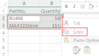 How to copy and paste BOM data?Copy and paste Part# and Quantity on separate lines,shown as below: